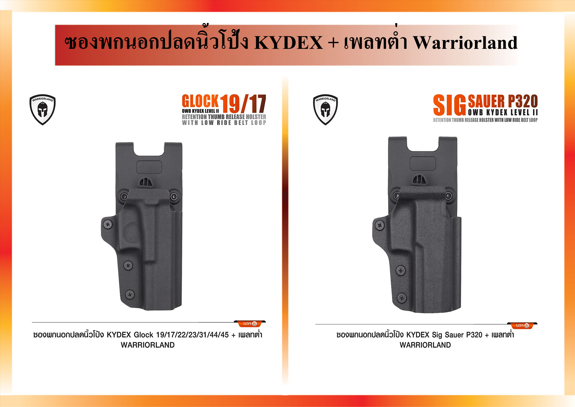 สินค้า ใน ซองพกนอกปลดนิ้วโป้ง KYDEX + เพลทต่ำ Warriorland (2 ชนิด)